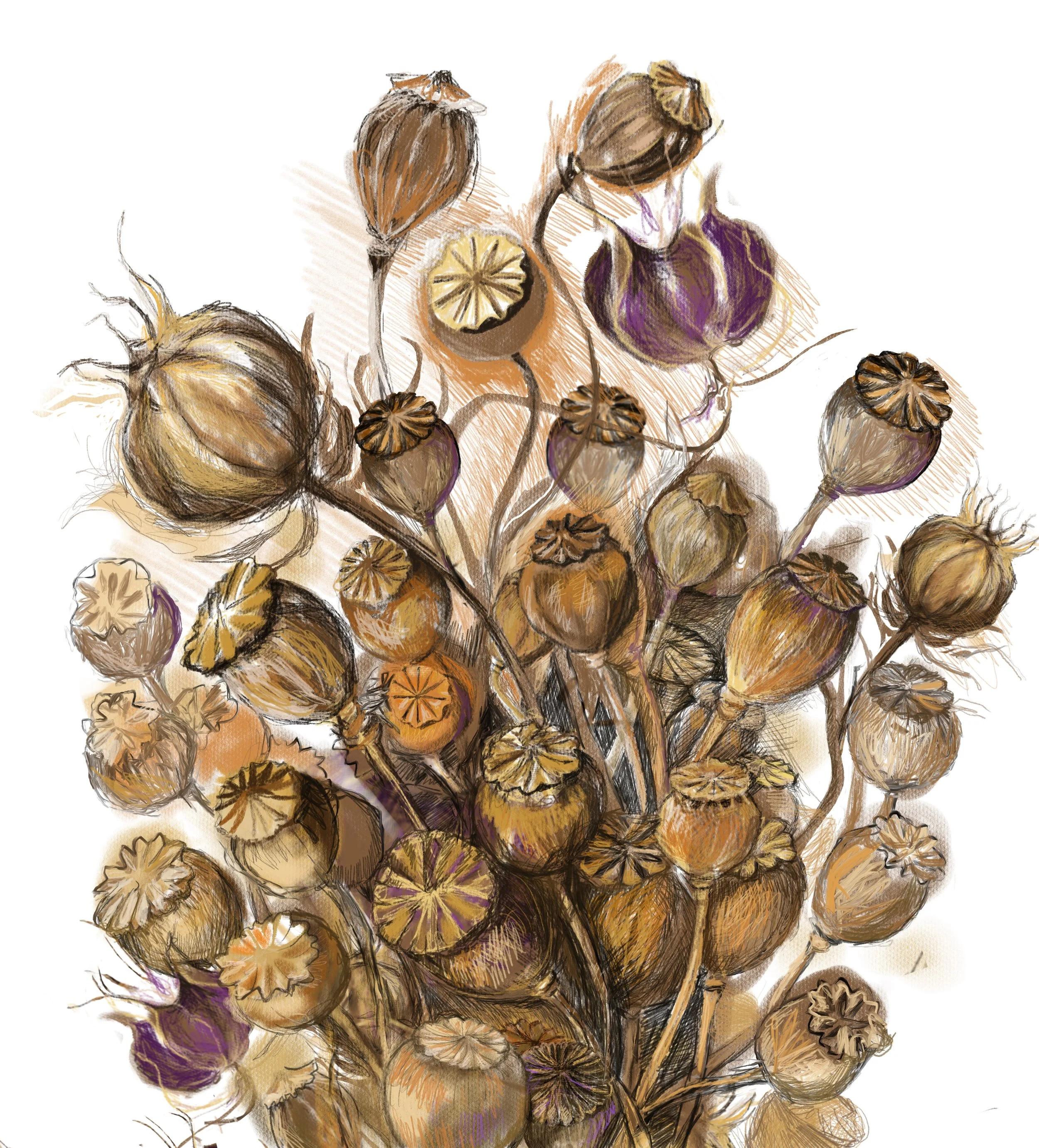 Works on paper, mixed media, ceramics, printmaking, jewellery, digital media, oils